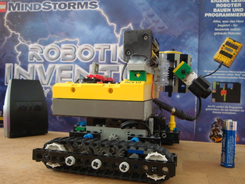 This robot sends a video stream to your computer via USB or radion transmission. The captured videostream is the evaluated within the LabVIEW application from the images using NI Vision technology and controls the robot accordingly.