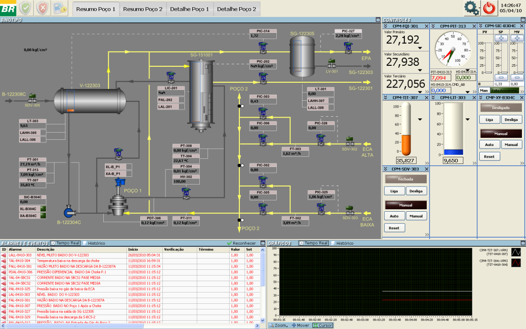 These subareas can filled with the panels of sinoptic, groups, alarms and graphics. This interface is totally reconfigurable. One application for many plants and every plant represents one line on the database. This system has own supervisory editor and dont need develop new code to include other plants to the system.