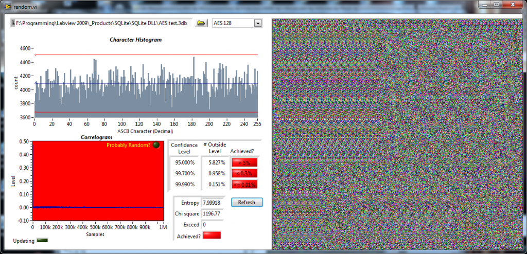 SQLite database statistical analysis with AES 128 ECB encryption.