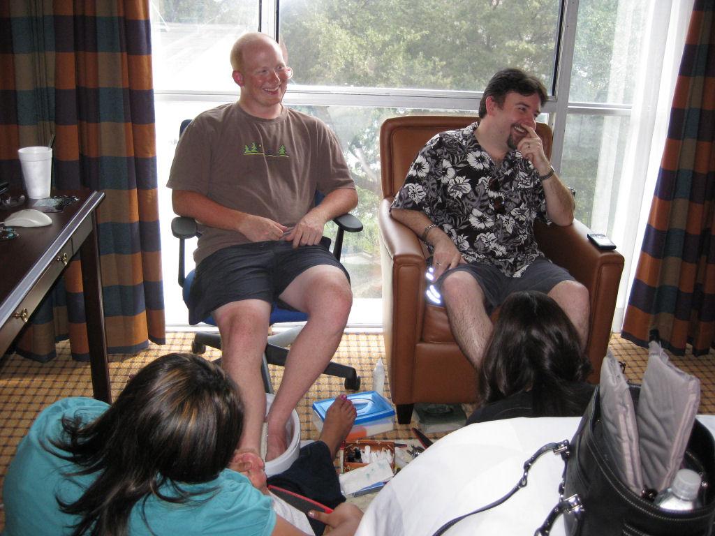 Newbie Jeff is embarrassed, yet pleased. Too bad Brian wasn't comfortable enough to join in!